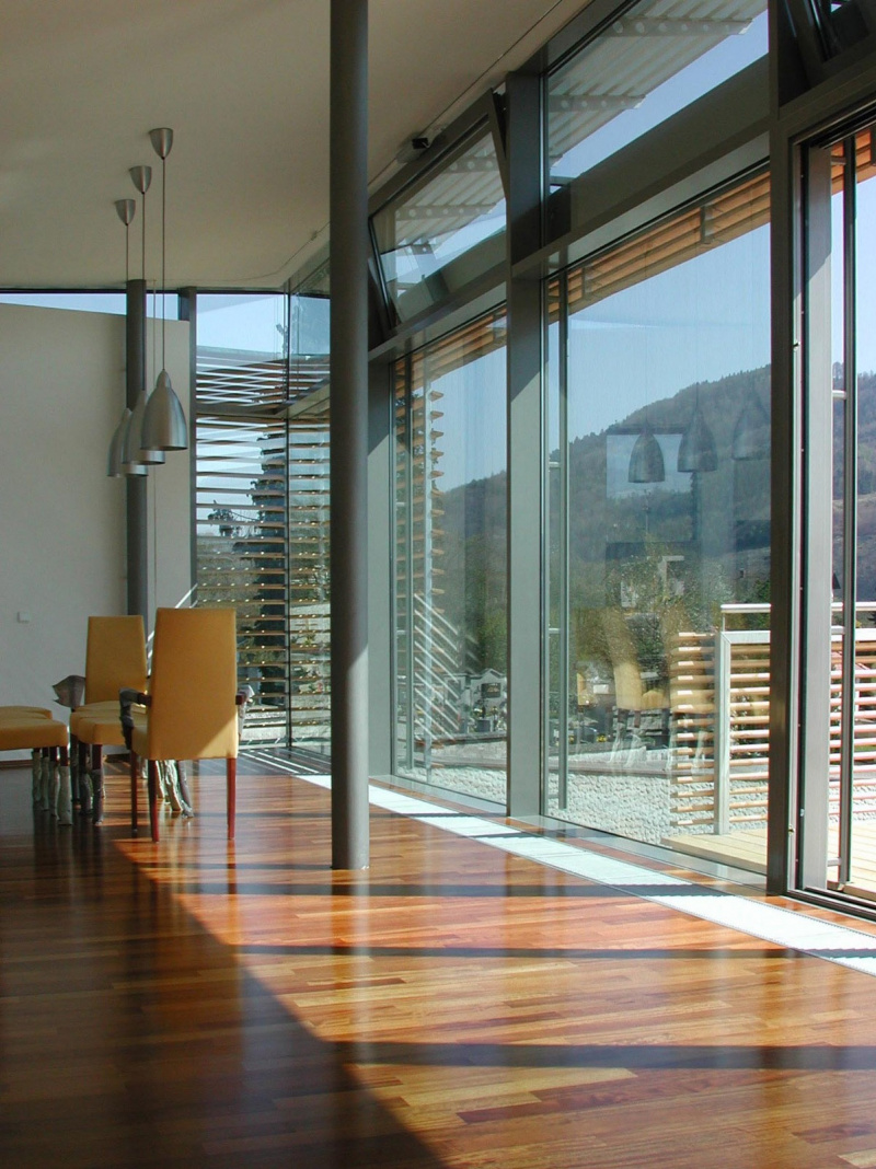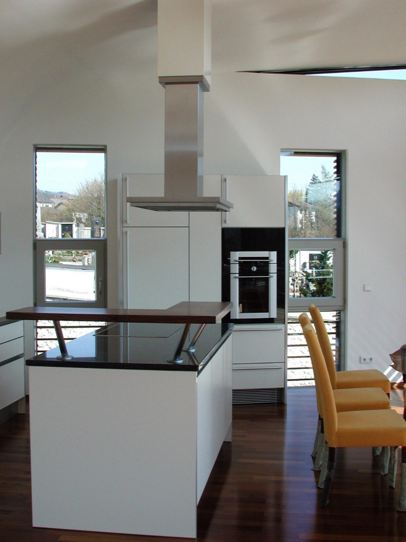 Der Grundriss verfügt über einen großzügigen offenen Koch- und Essbereich. Die großen Fensterfronten, die sich im ganzen Haus wiederfinden, bieten den Bewohnern einen Ausblick ins Donautal, der zum Träumen einlädt.